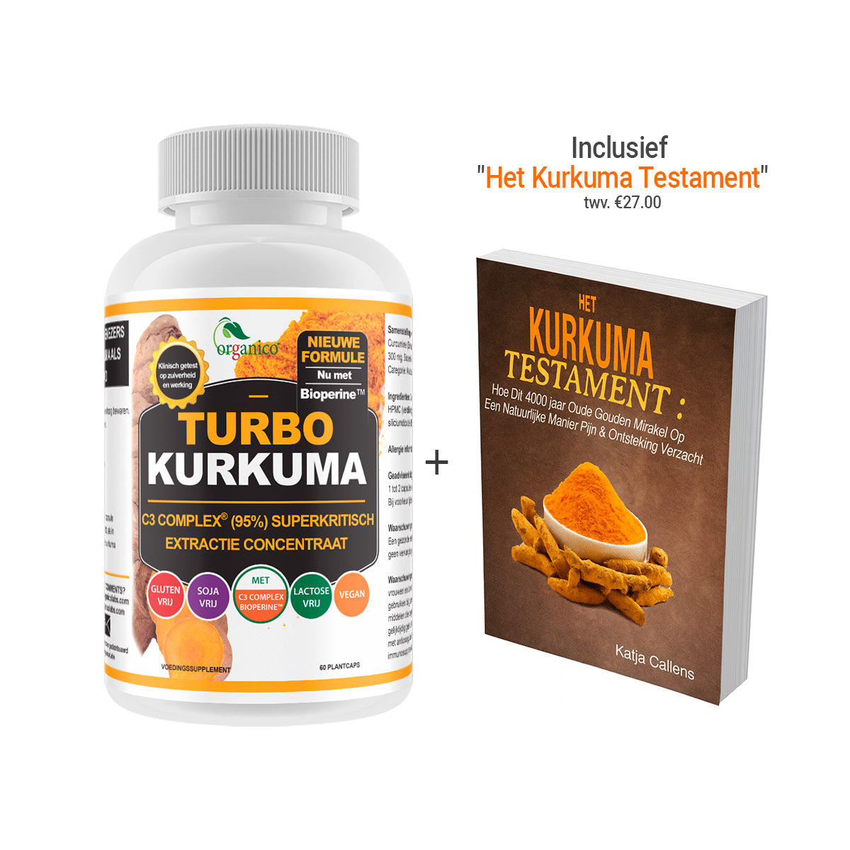 Samenstelling per dagdosering (2 capsules): Curcumine (Extract C3®) 800 mg, Fenegriek (FenuFibers®) 300 mg, Bioperine™ 10 mg.